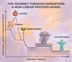 Key emotional reactions can occur sequentially or simultaneously. According to change resistance theories, and models like the Kübler-Ross change curve, anticipation can bring anxiety, stress, fear, confusion, and anger. For example, thoughts like: “Will my current skills still be relevant?” or “Will I be able to keep up with this new system?” arise. This happens because the human brain interprets uncertainty as a threat to security, routine, and control. Thus, emotional reactions are simply data which signals that something needs attention.